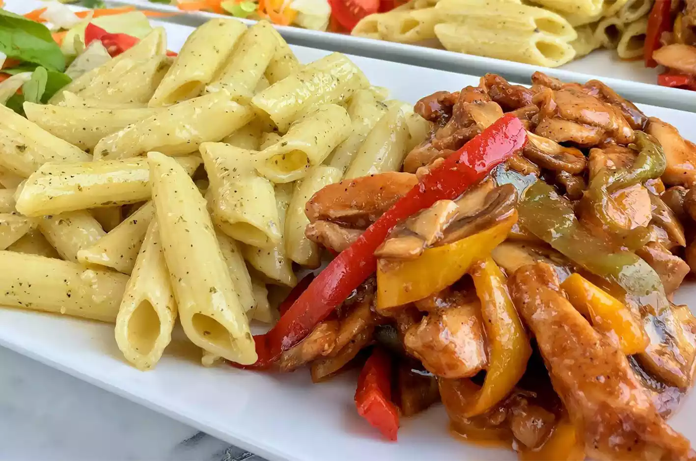 Maxician sosu ile haramanlanmış penne makarnaya özel marine edilmiş tavuk parçaları,mantar ve jalepone biber ekledik!