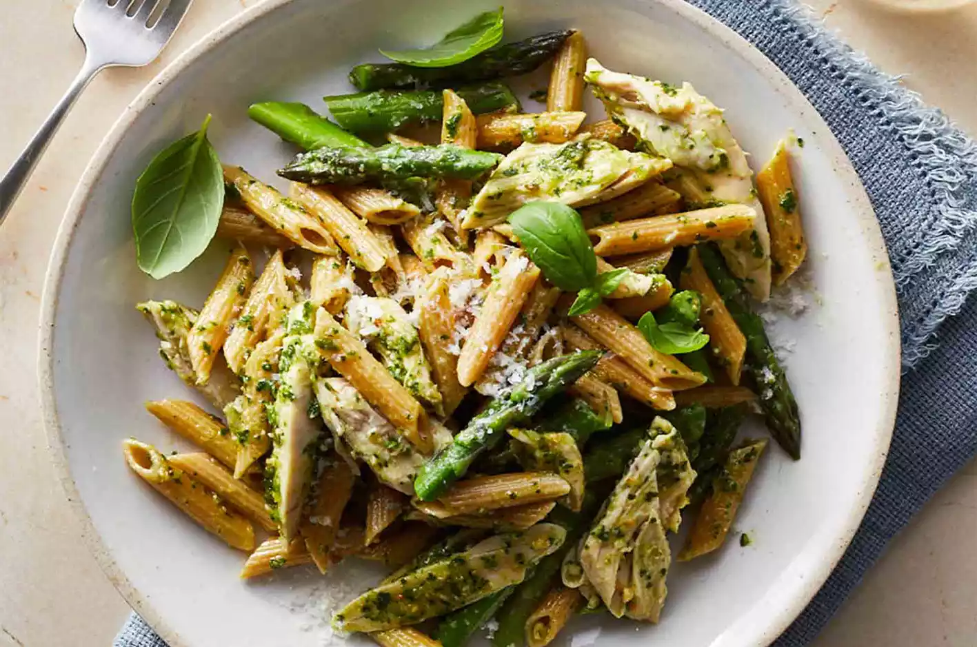 Ferahlatıcı pesto sosu ve kremayla haramanlanmış penne makarnaya özel marine edilmiş tavuk parçaları ve mantar ekledik!