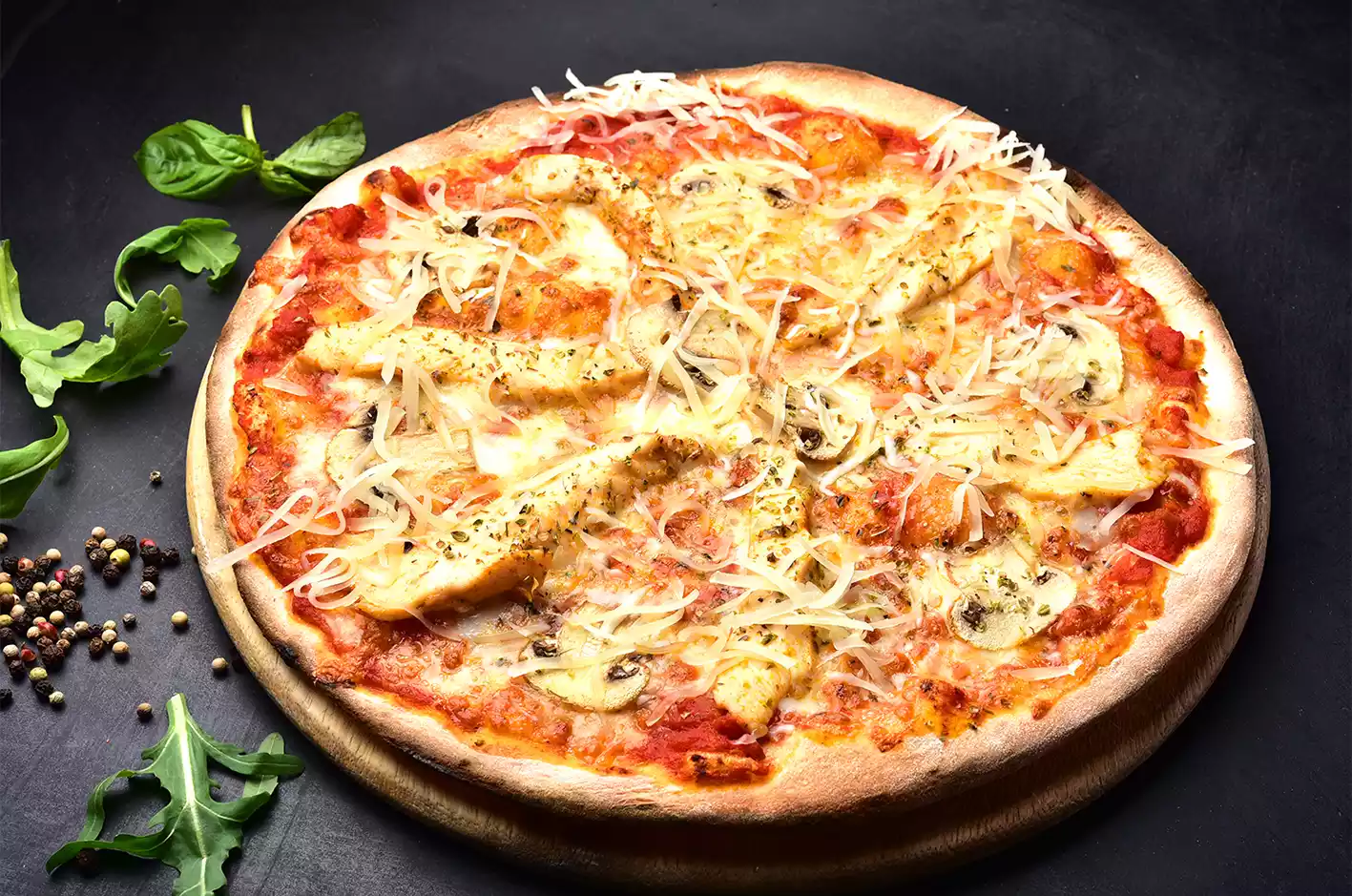 El yapımı özel pizza hamurumuz ve sosumuzla, mozarella ve barbekü soslu tavuk lezzeti.