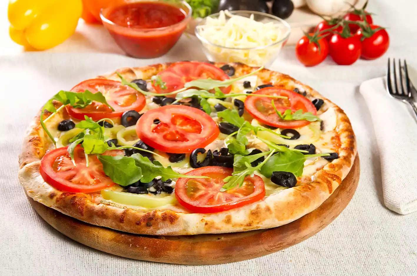 El yapımı özel pizza hamurumuz ve sosumuzla , mantar, domates, biber, mısır, zeytin lezzeti.